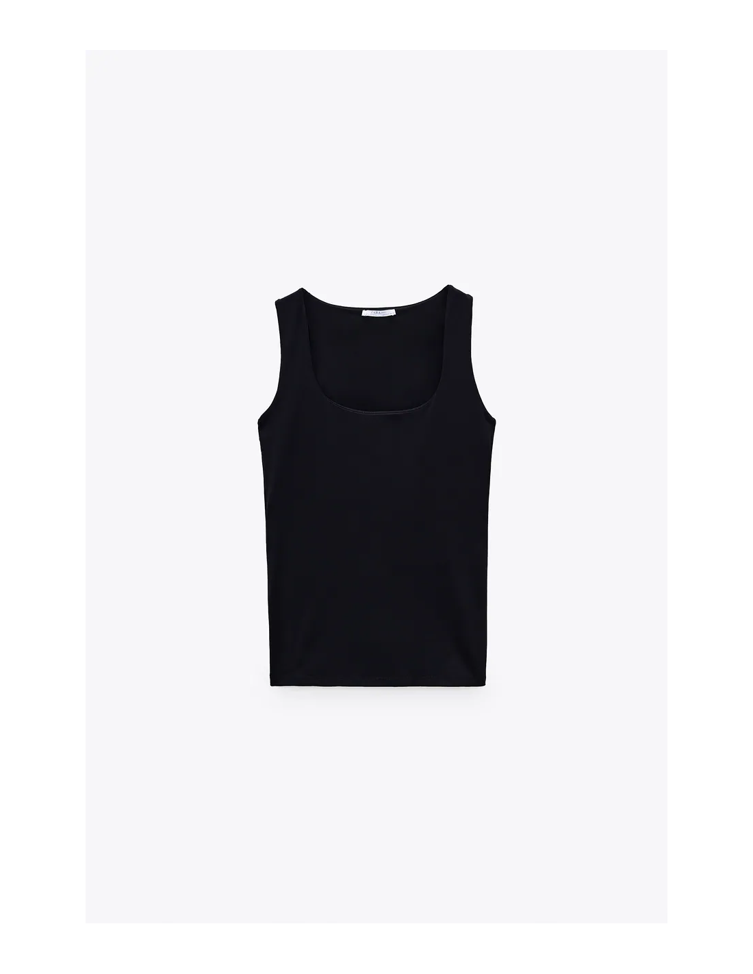 CAMISETA AJUSTADA EN MEZCLA DE POLIAMIDA CON TIRANTE ANCHO Y REFUERZO EN PECHO.