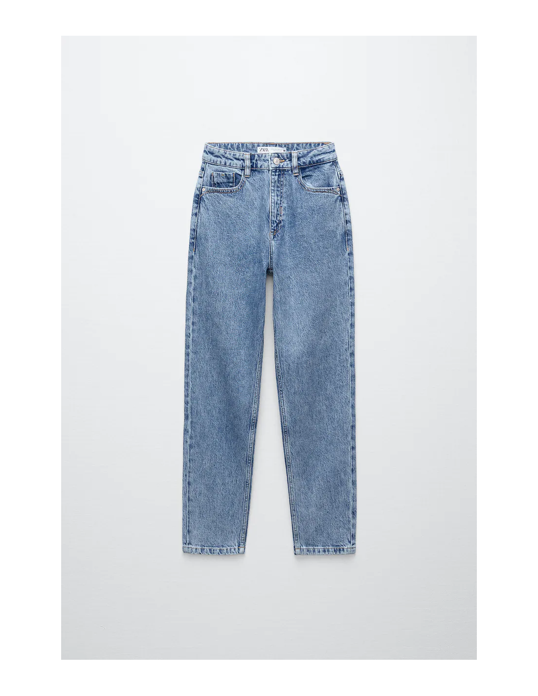 JEANS DE TIRO ALTO CON CINCO BOLSILLOS. EFECTO LAVADO. CIERRE FRONTAL CON CREMALLERA Y BOTÓN METÁLICO.